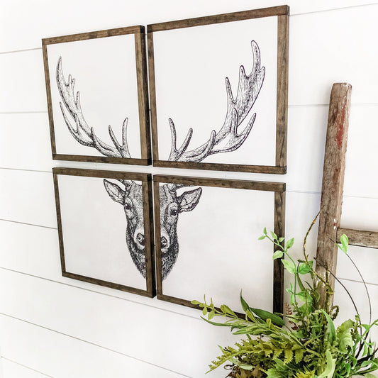 4 Panel Deer Head Photo Wood Sign