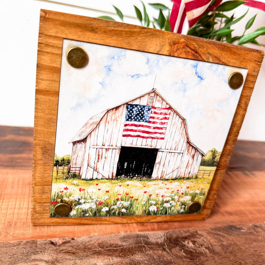 White Barn American Flag Mini Wood Block