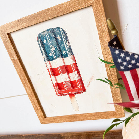 Popsicle American Flag Wood Sign
