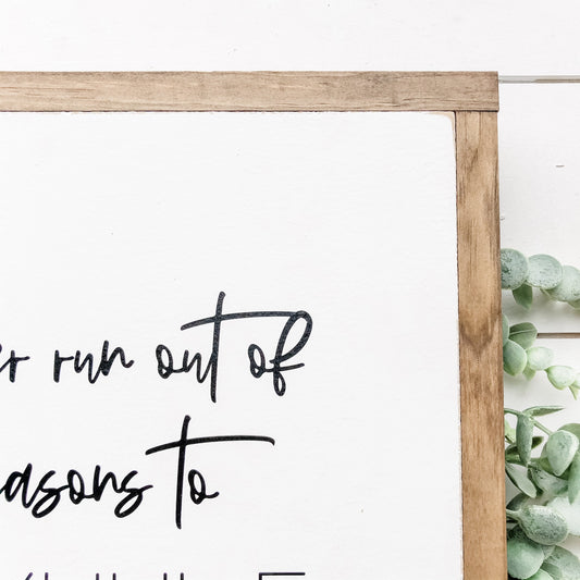 Never Run Out of Reasons to Smil Wood Sign
