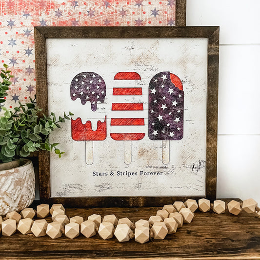 Stars & Stripes Popsicles Vintage Wood Sign