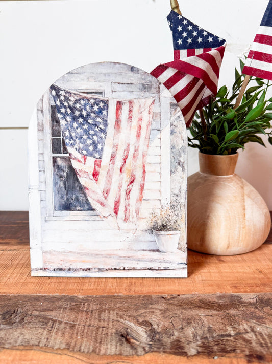 Vintage 4th of July Three Boys and Fireworks Arched Sign
