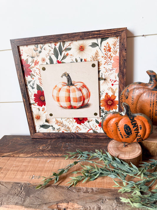 Whimsical Fall Plaid Pumpkin Plaque Wood Sign
