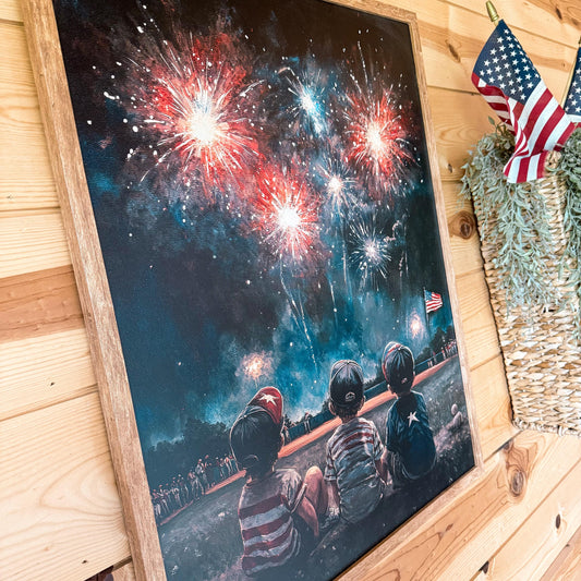 Vintage 4th of July Three Boys and Fireworks Arched Sign