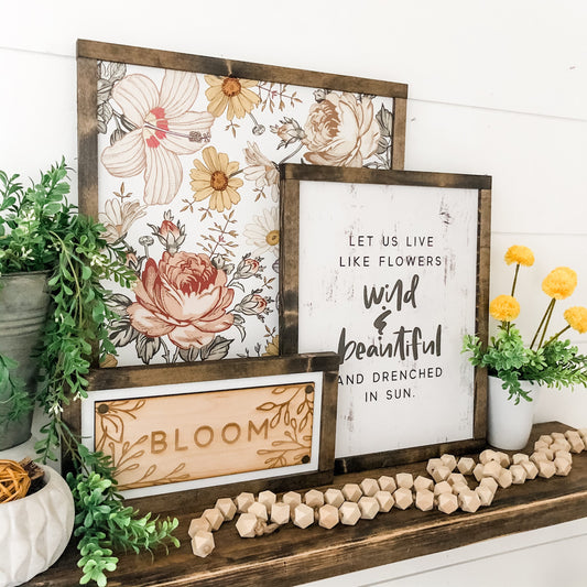 Spring Floral Vintage Pattern Skinny Wood Sign