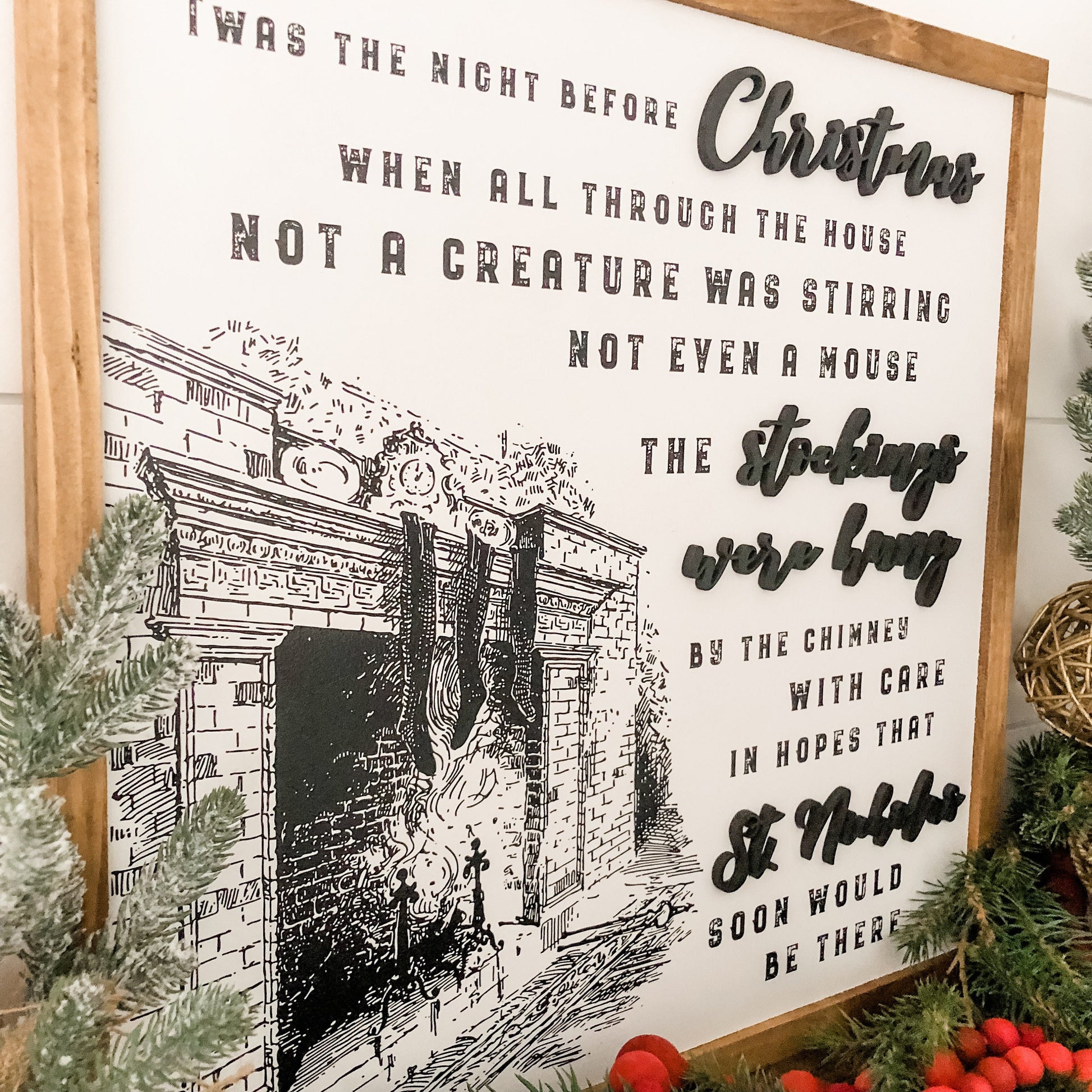 Handmade wooden Christmas themed sign with the "Twas the Night Before Christmas..'' saying. Some wording has laser cut elements giving each sign and added unique dimension.