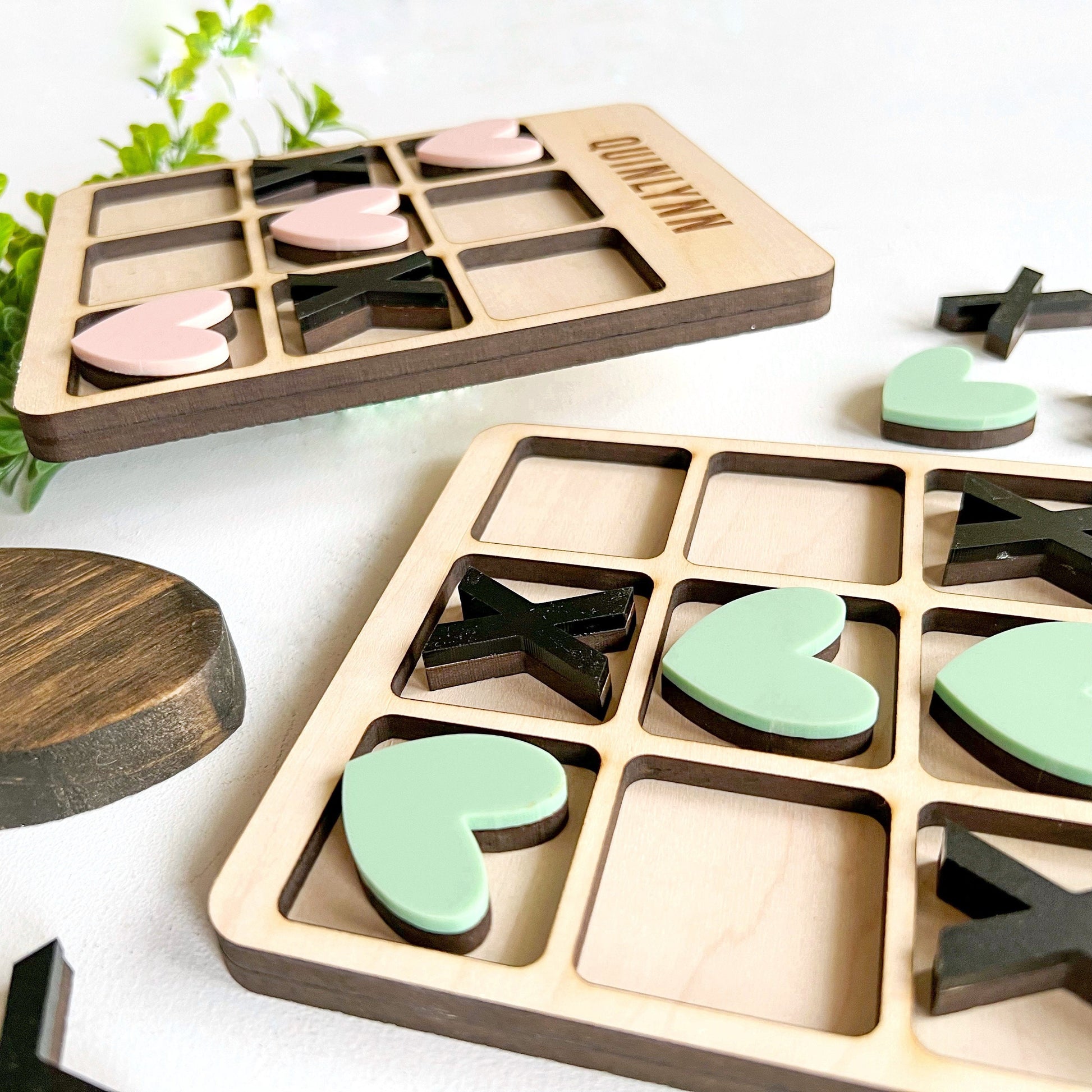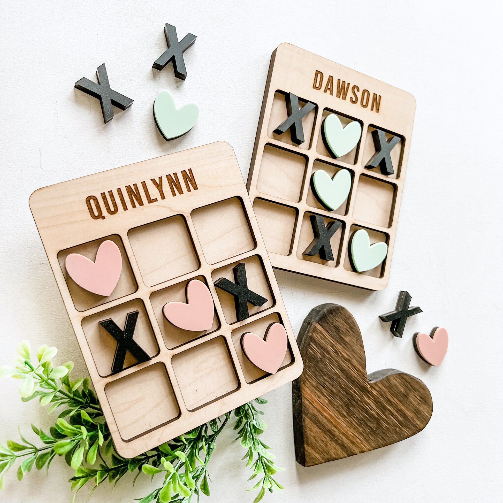 Customized tic tac toe game perfect for Valentines Day, Easter baskets, kids gifts and so much more! Made from 1/4" maple-mdf wood and customized with the name of your choosing!