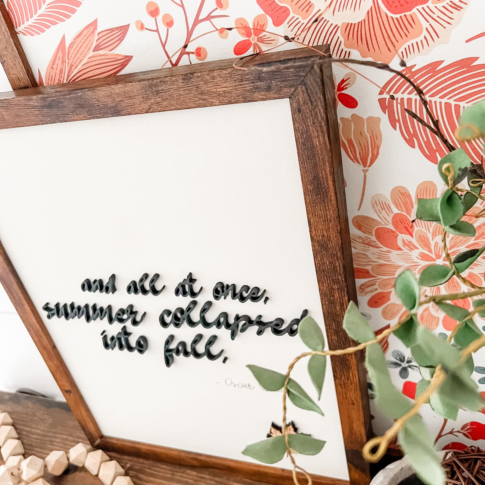 Handmade wood fall sign DUO. This listing is for the the TWO signs as shown. The floral background sign and Oscar Wilde quote sign.