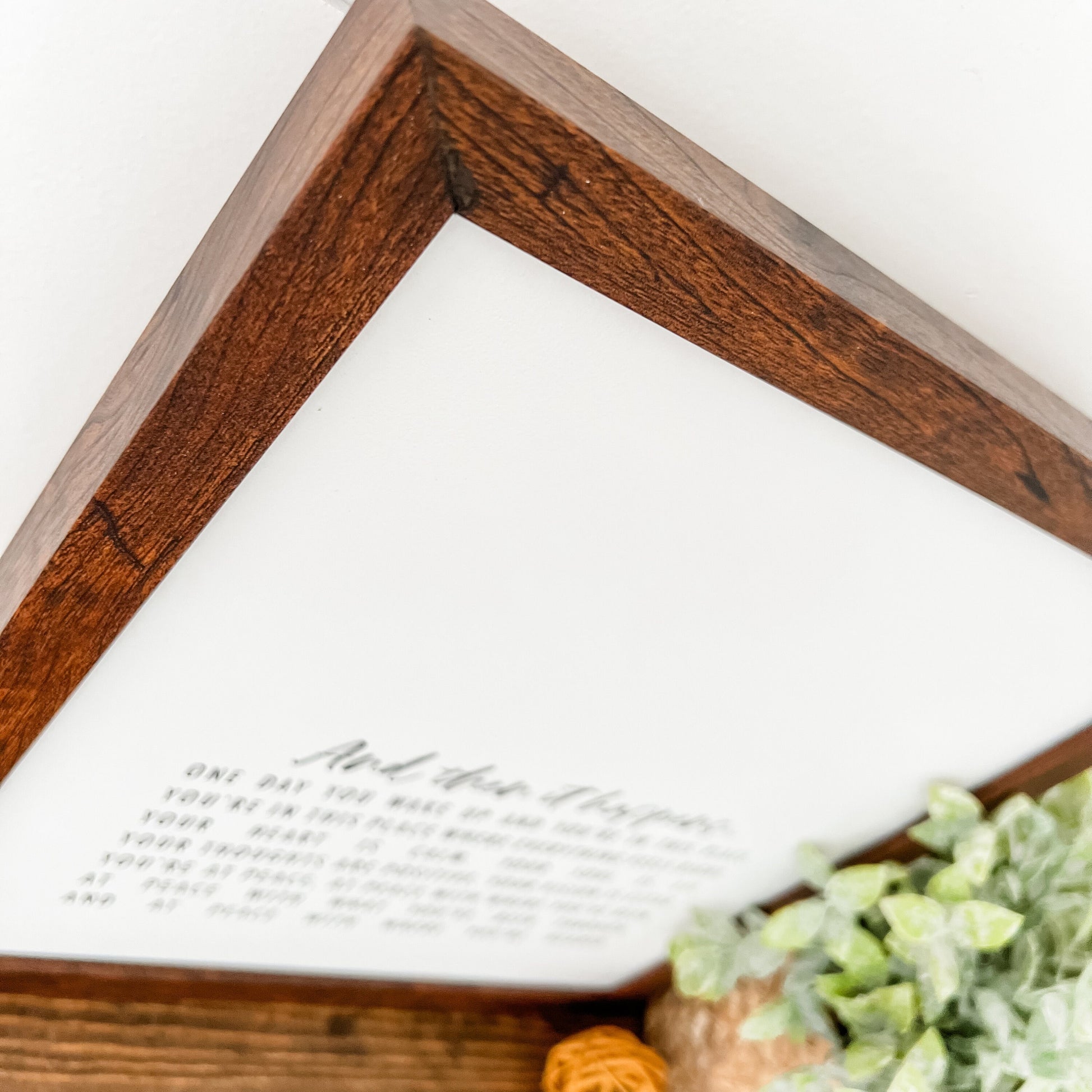 Beautifully created inspirational quote sign, perfect for a housewarming gift, wedding gifts or any special occasion! Choice of frame color from listing photos. Sign will come with the hardware to hang your sign, but can stand propped up, if desired.
