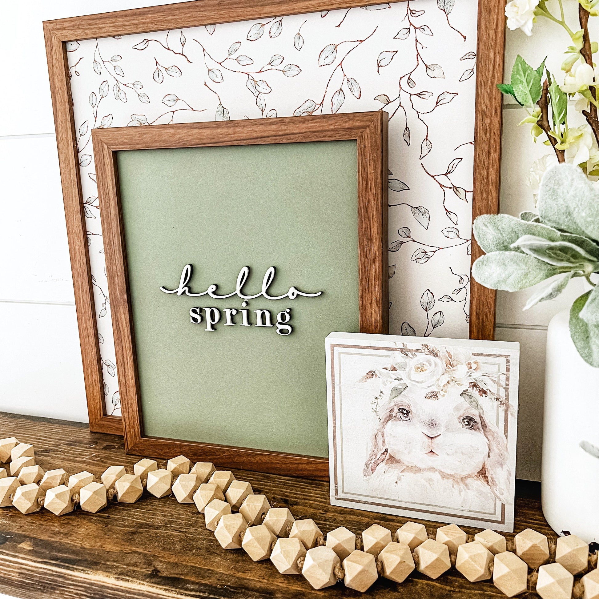 Size variations: 6x6 Mini Rabbit Sign / 9x11 Hello Spring Sign / 15x15 Floral Background