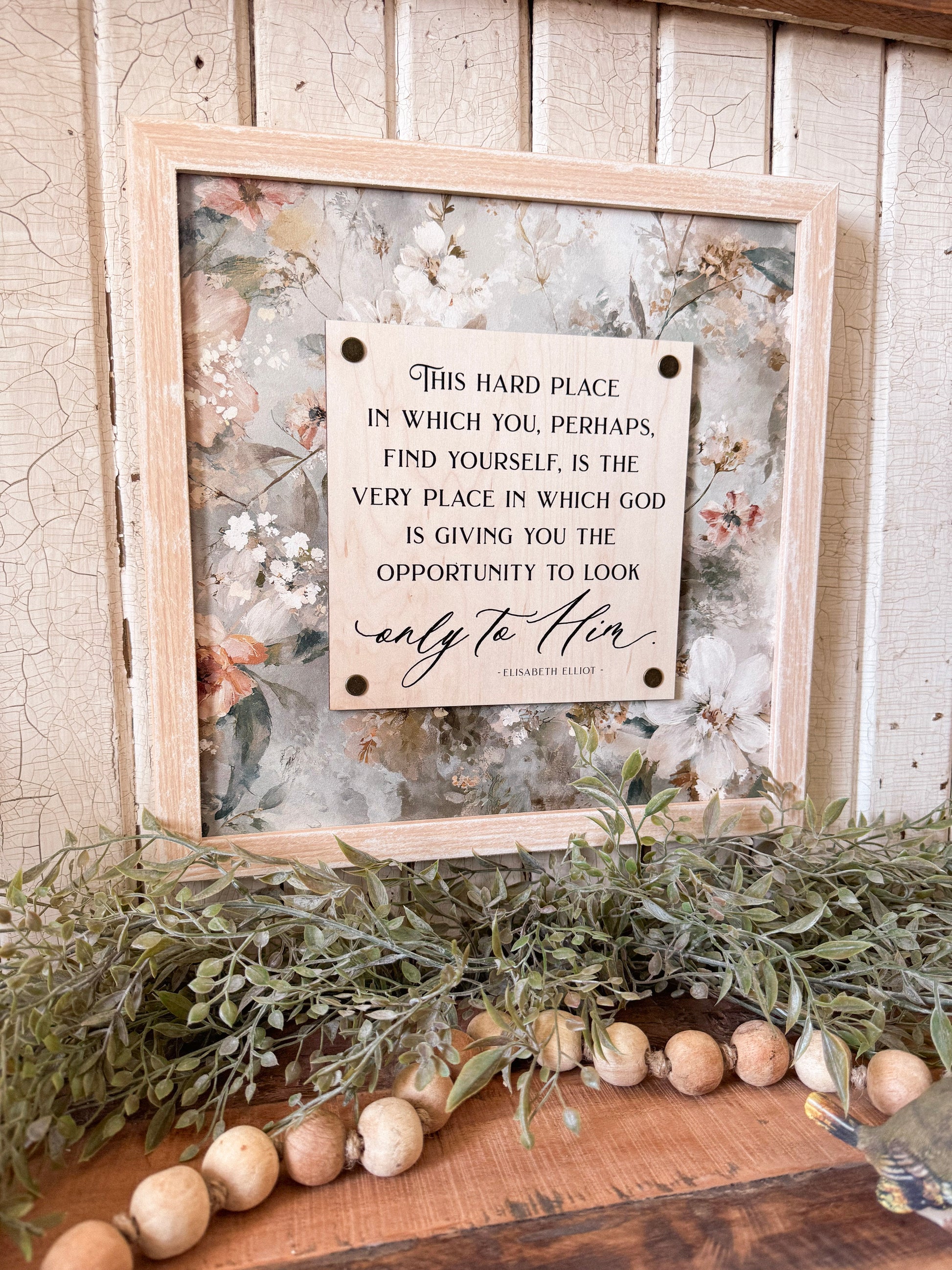 Handmade wooden sign with a faith base inspirational quote, perfect for your every day home decor. Beautiful vintage color tones and printed directly on wood and framed in the frame color of your choice. Perfect for a statement piece or to add to a shelf.