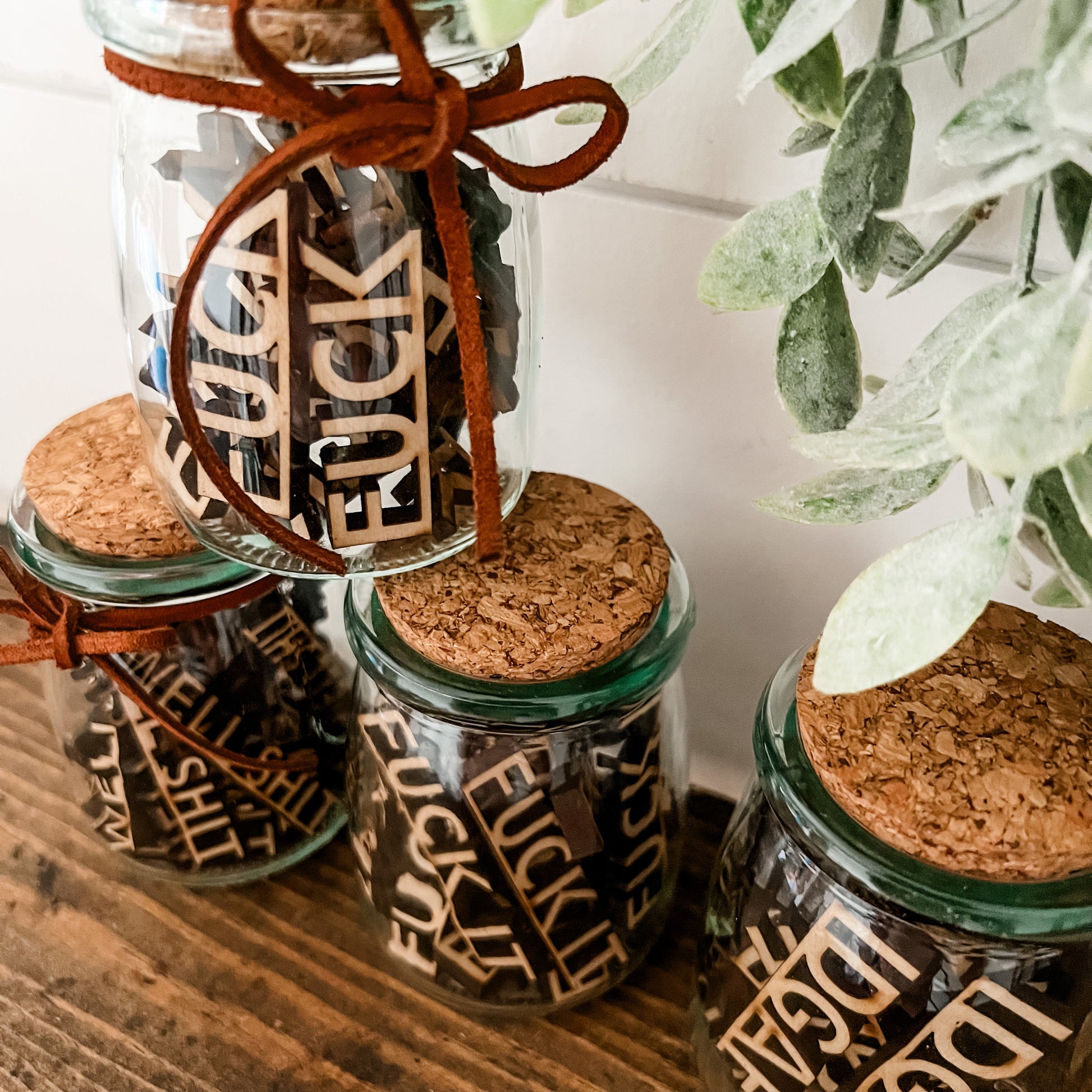 A spin on your traditional 'swear jar'! Mini jar of swear words perfect for a funny gift idea, office decor or just to have as a conversation piece!