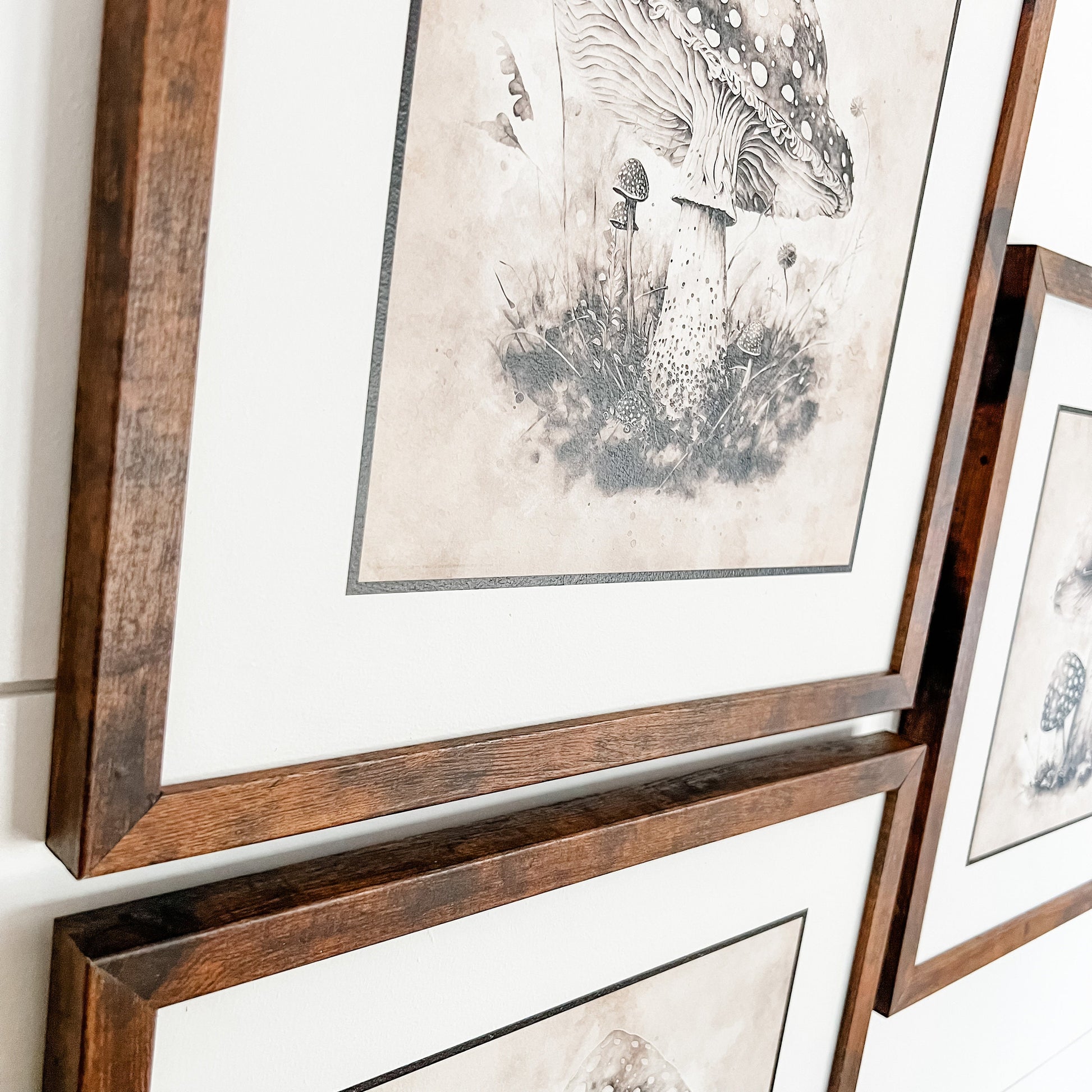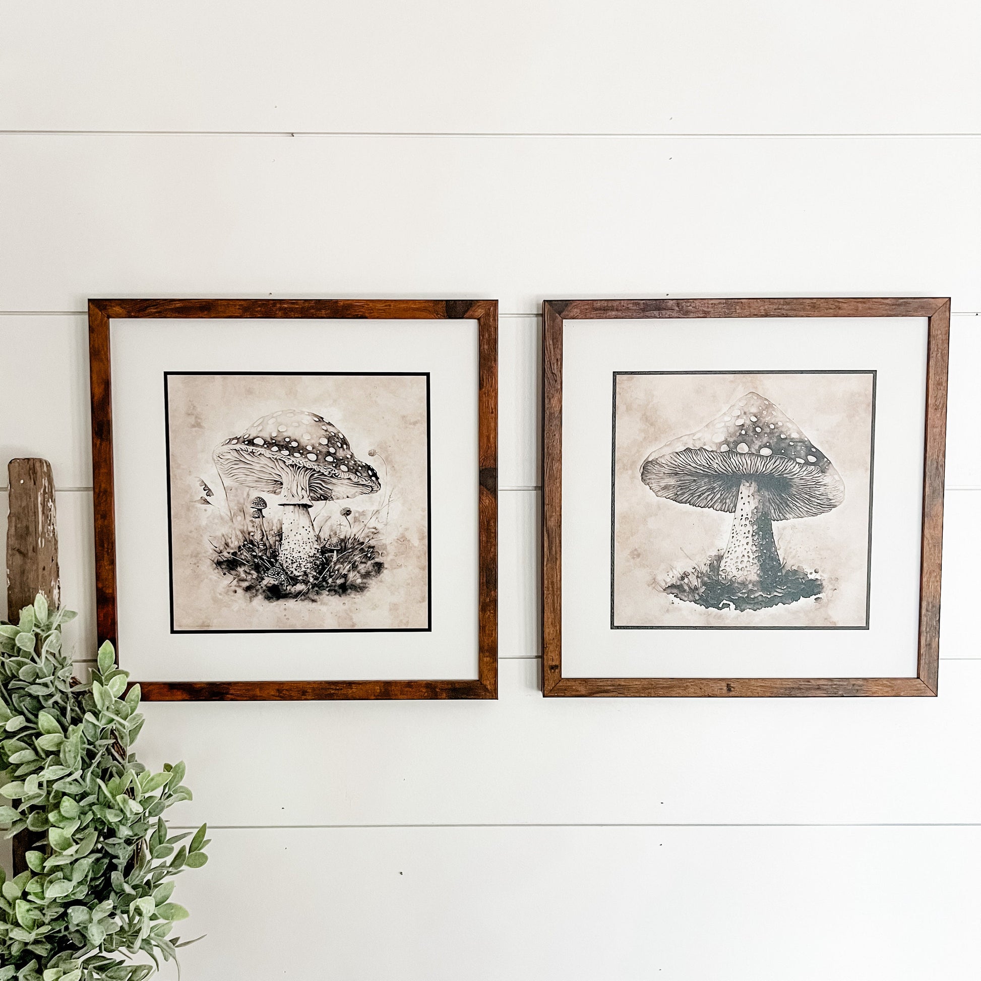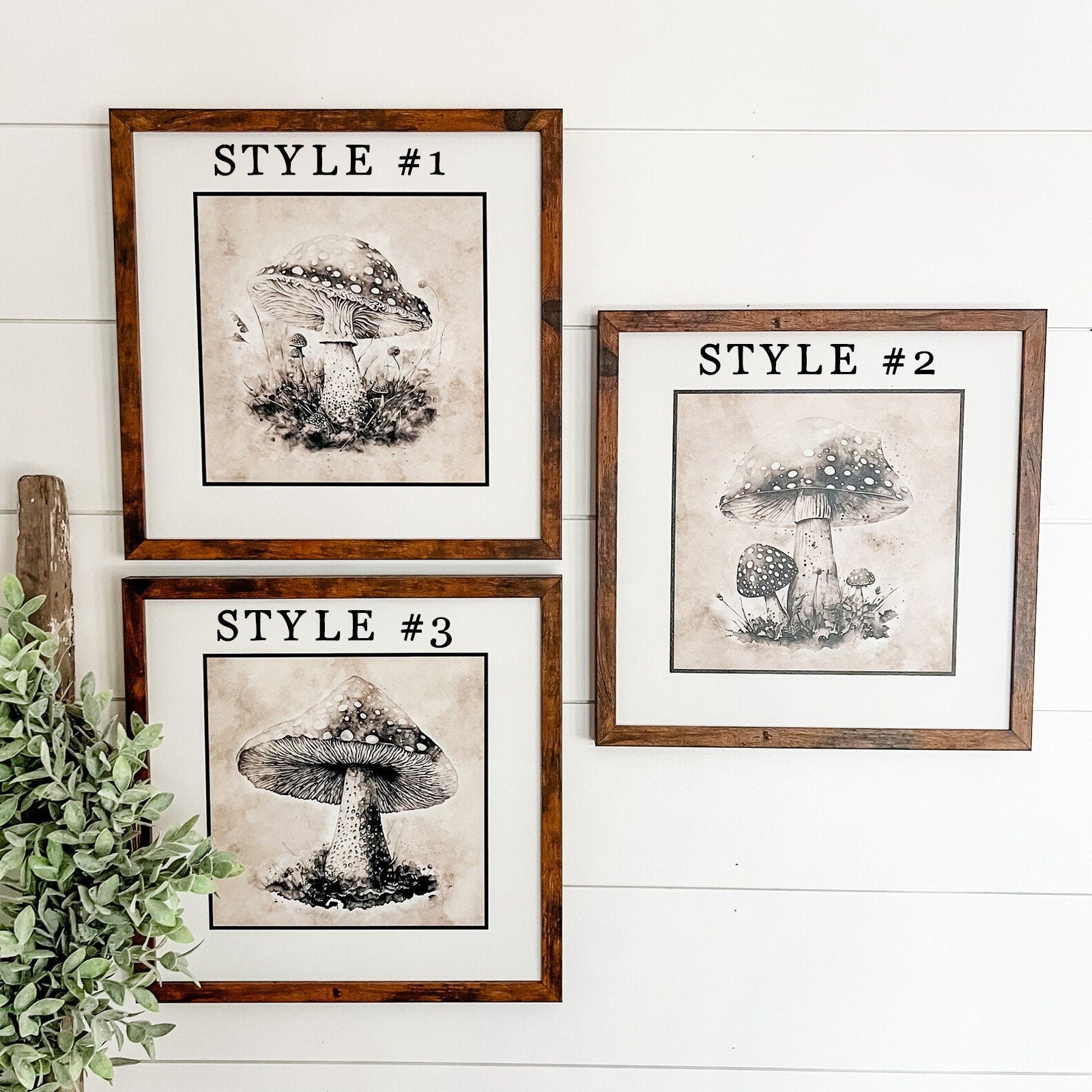 Set of three vintage abstract mushroom signs. Can purchase each individually or as a set of three. Choose frame color based on the options provided.