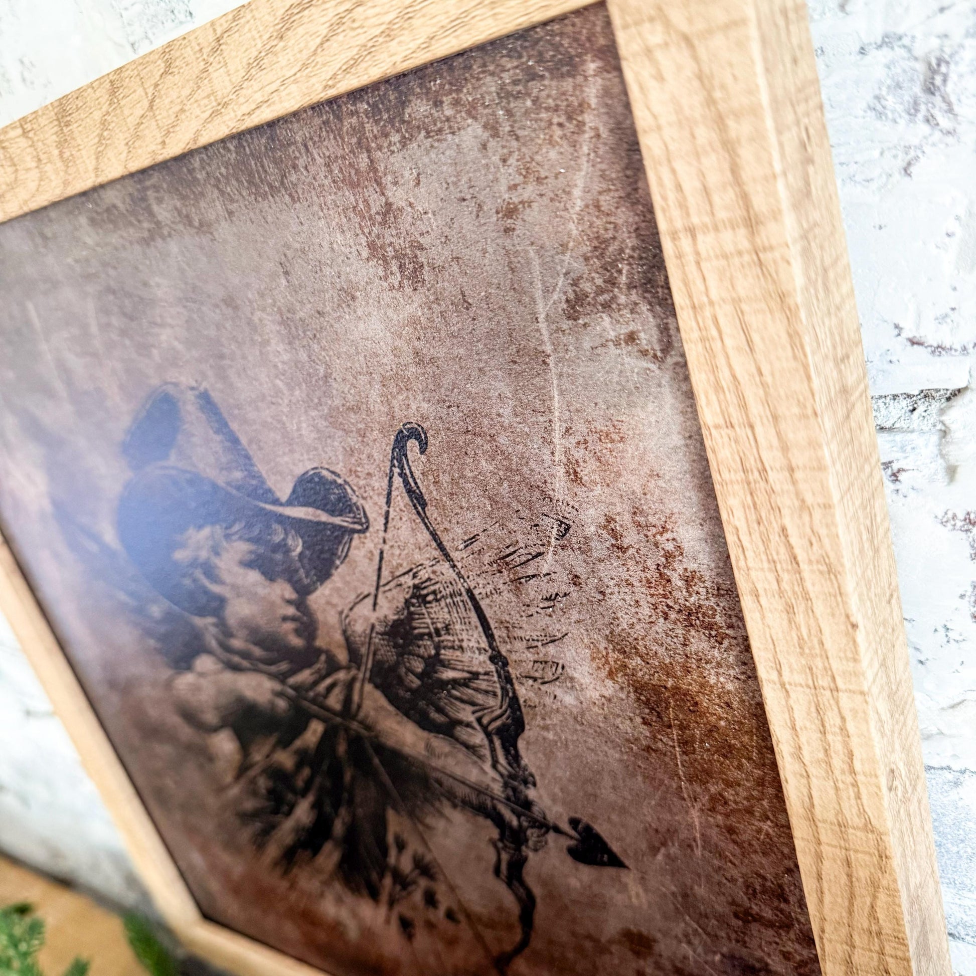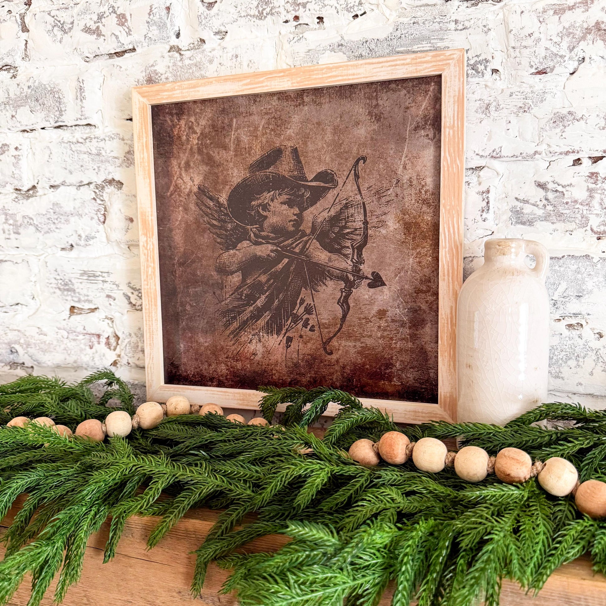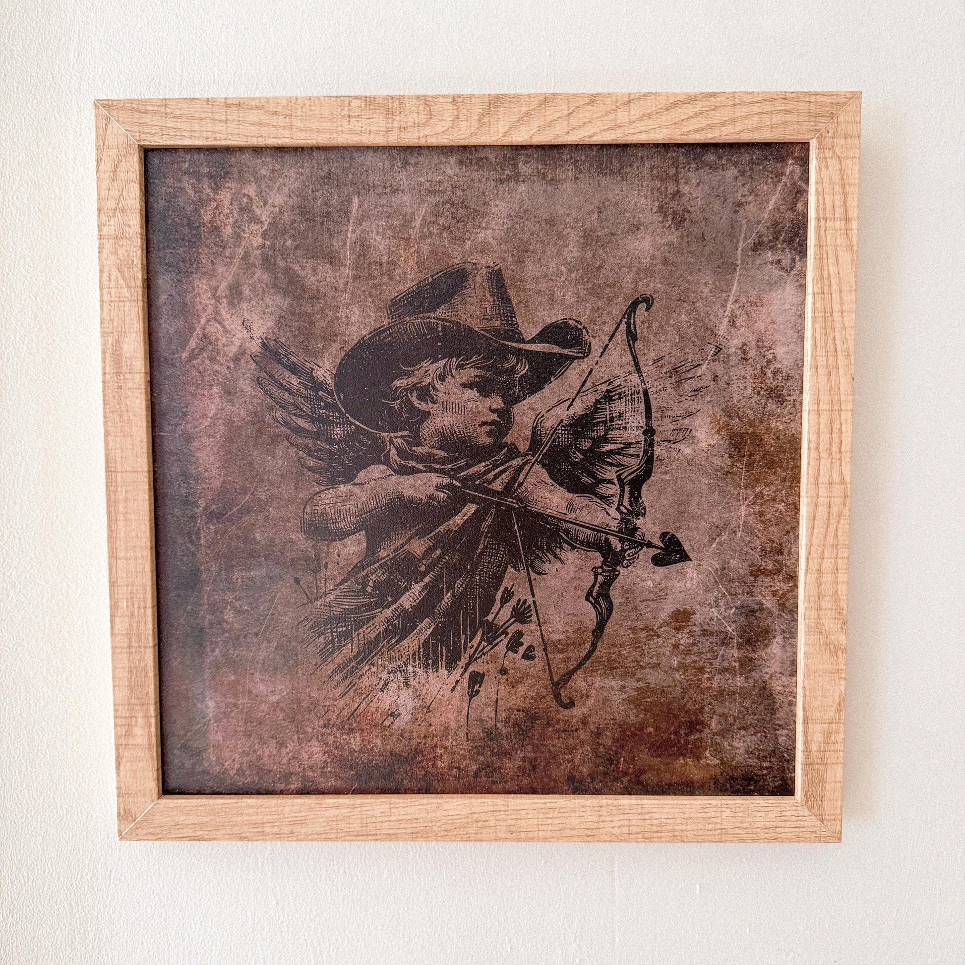 Handmade wooden cupid sign with vintage brown textured background great for layering with other pieces. Would make a great accent to any nursery decor as well!