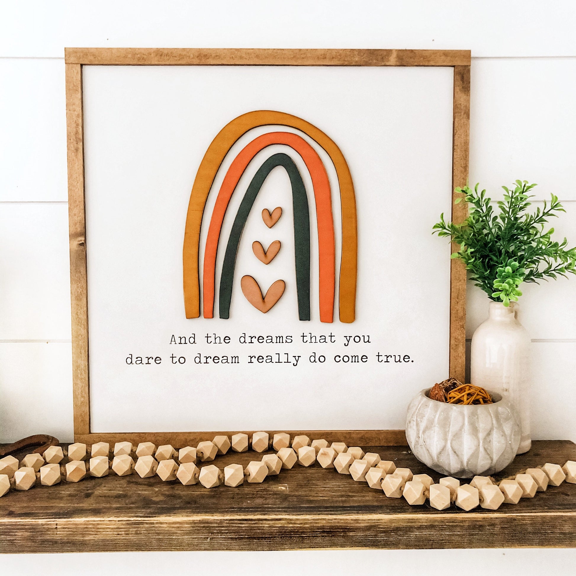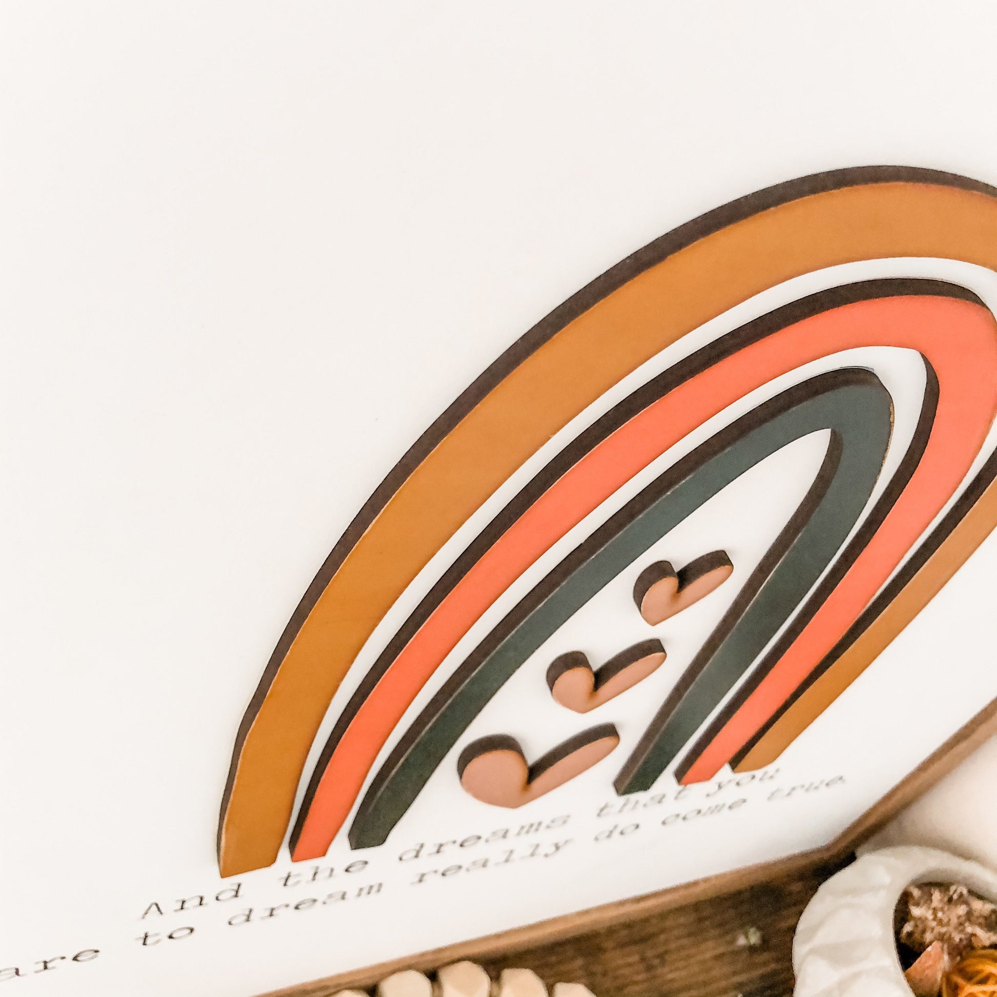 Unique rainbow nursery sign with inspirational quote. Perfect for any nursery. The rainbow part is laser cut, giving each sign an added unique dimension.