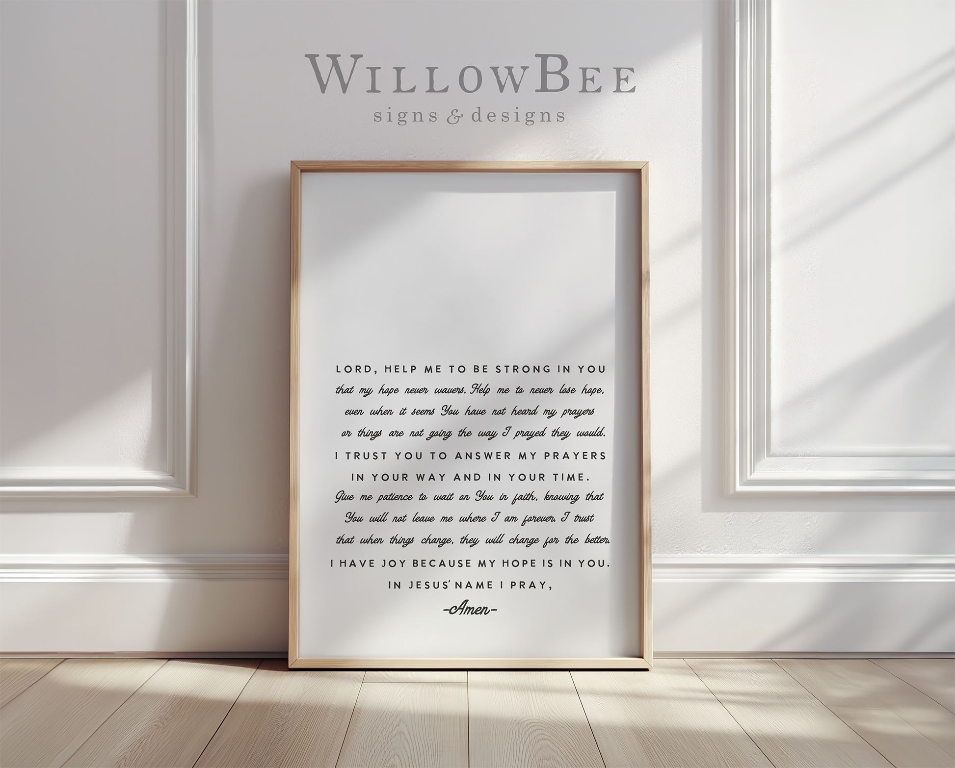 Patience prayer digital download file. Digital files will be sent in a separate email once "purchased" that you can then download. Size of files: 11x14".