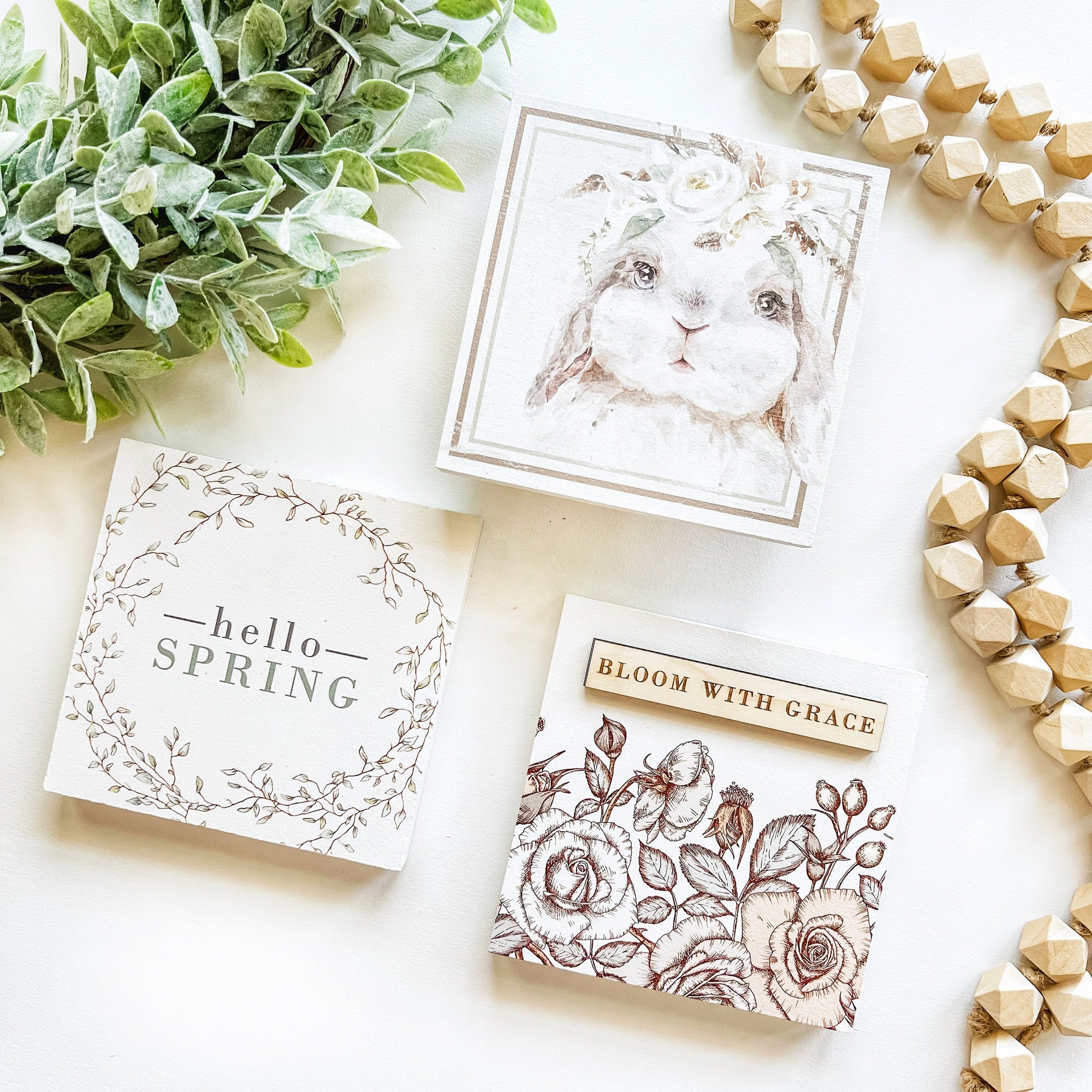 Mini, tiered tray signs, perfect for styling and to sit on a shelf in any area of your home! Perfect for spring and Easter!