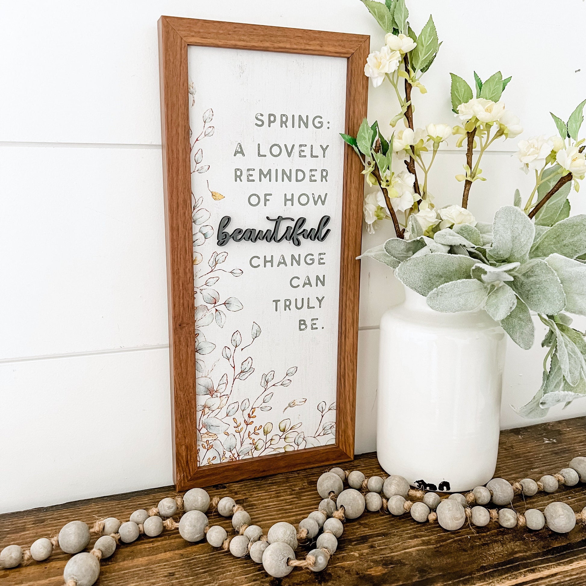 Handmade wood sign with Spring inspired inspirational quote. The 'beautiful' wording is laser cut, giving each sign an added unique dimension.