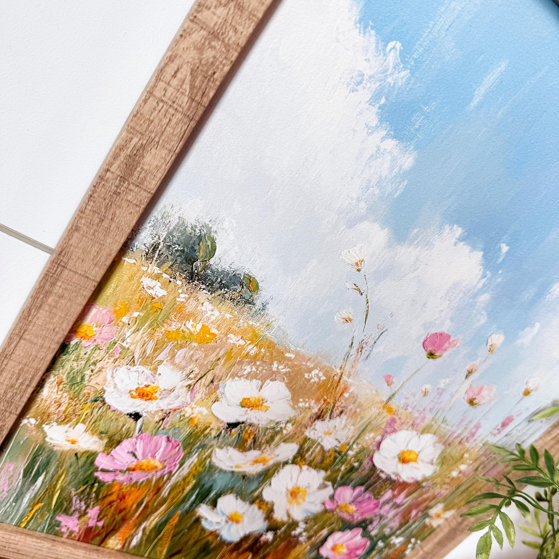 Handmade wooden sign with beautiful spring colorful wildflowers perfect for your Spring and everyday decor. Vibrant and colorful and printed directly on wood and framed in the frame color of your choice. Perfect for a statement piece or to add to a shelf.
