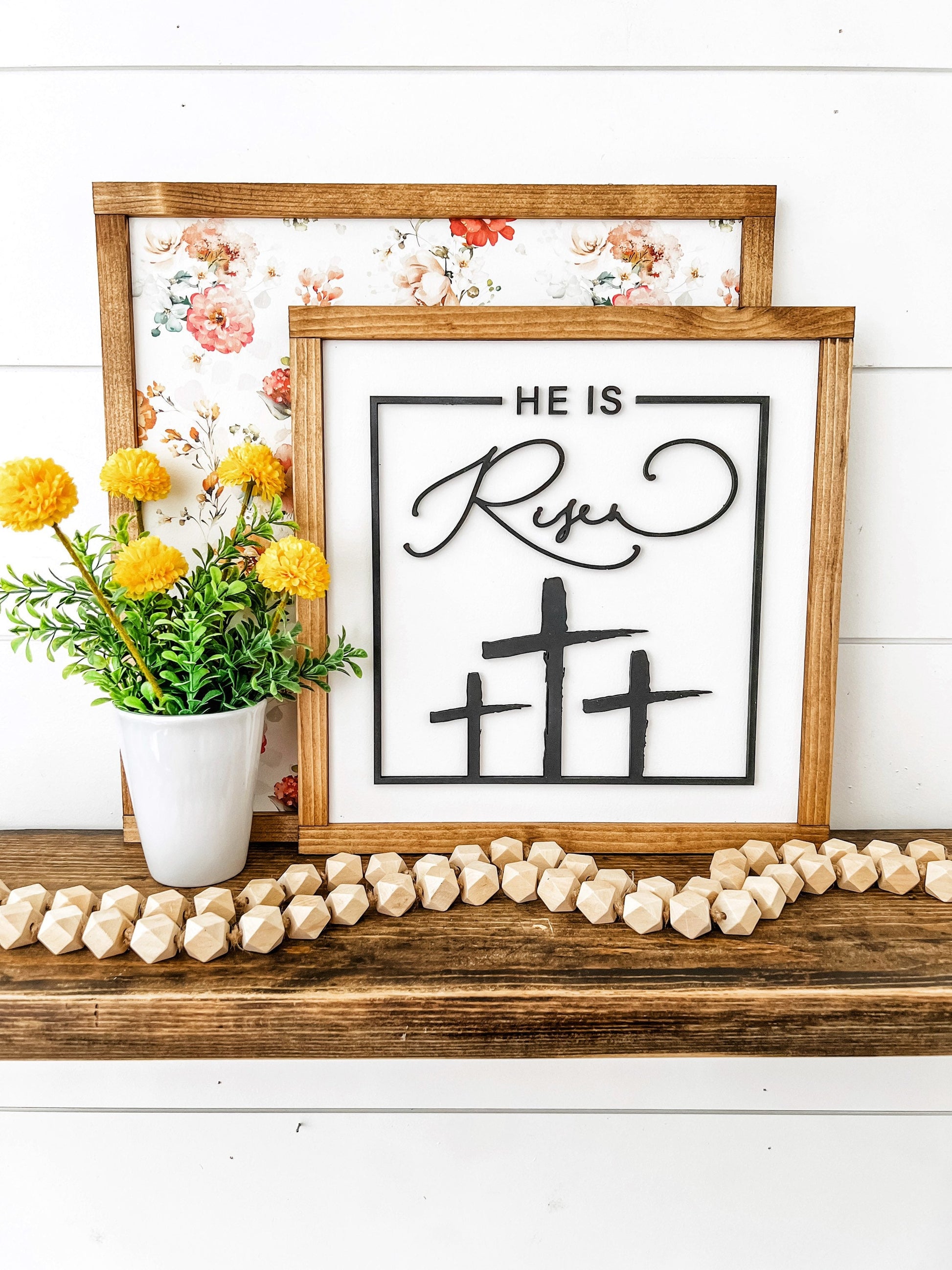 Handmade wooden Easter inspired sign, with laser cut letting giving each sign an added unique dimension.