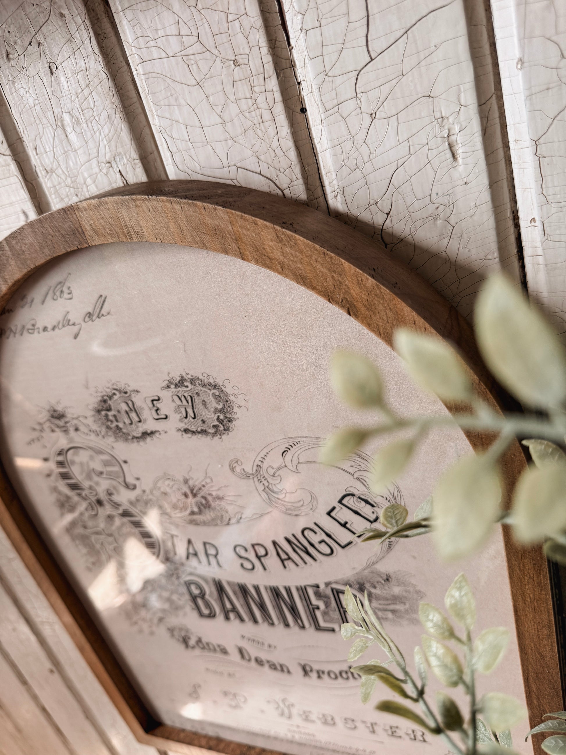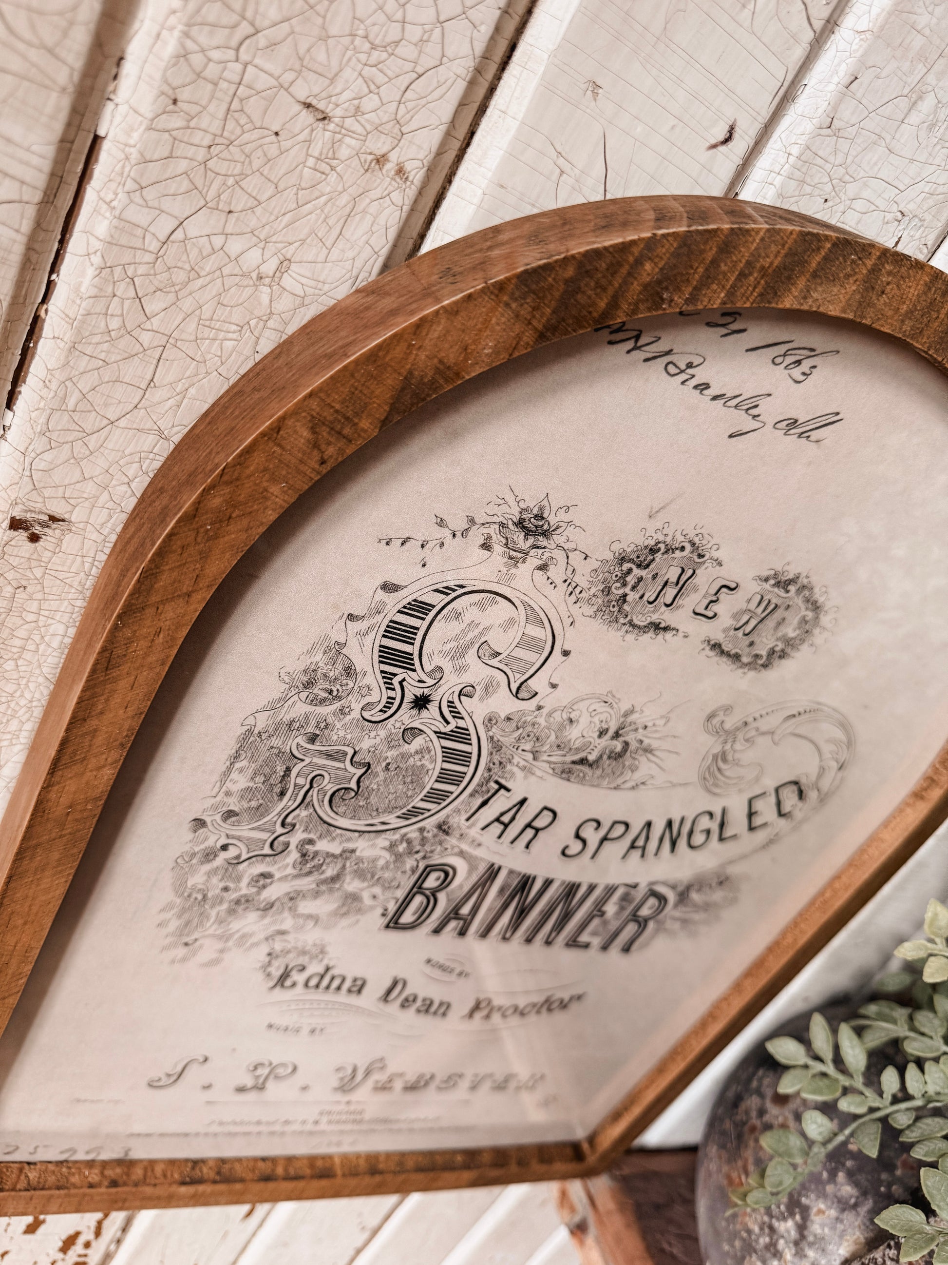 Star Spangled Banner Vintage Black & White Framed Arched Print