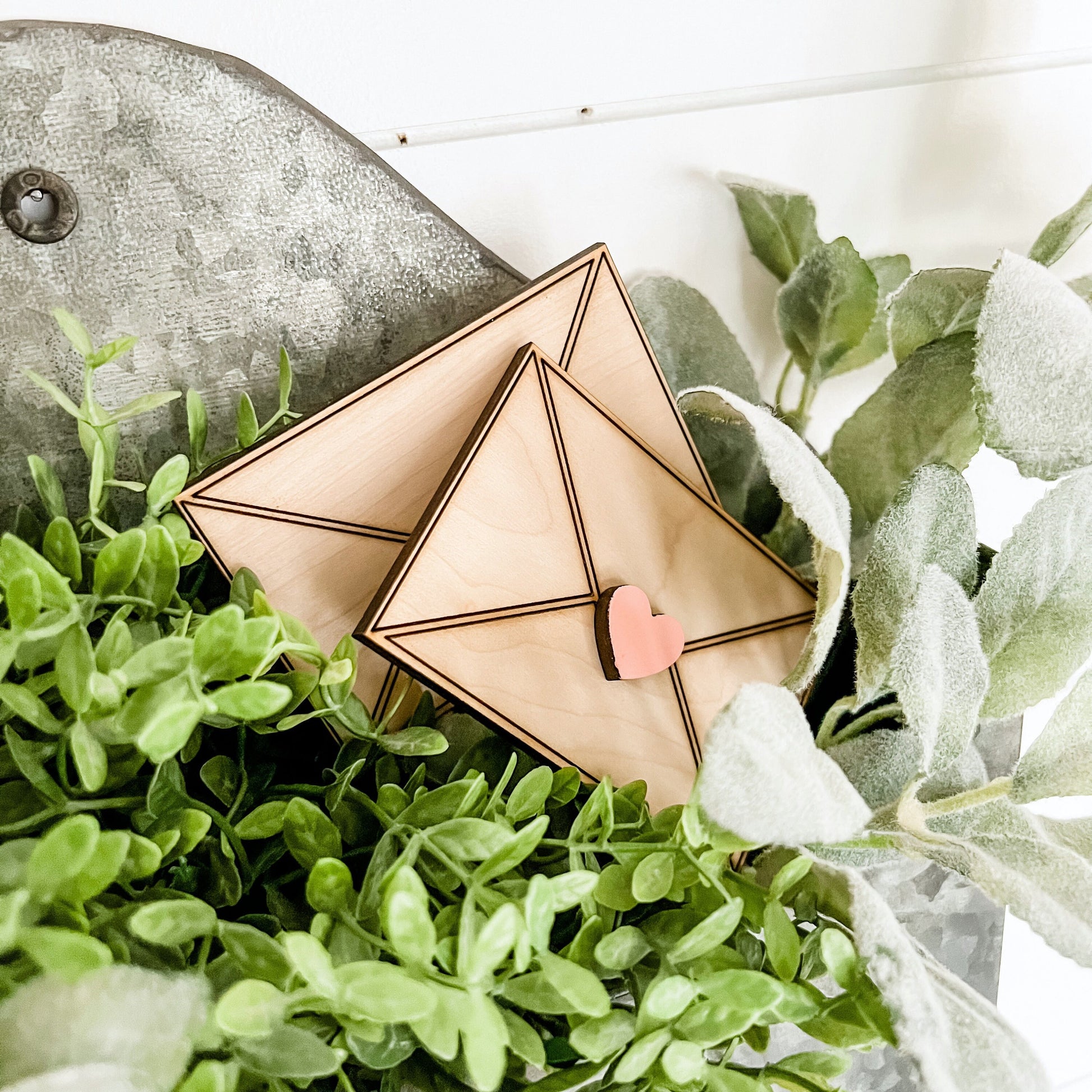 Each envelope measure approximately 3.75" x 2.5". Think business card size, just a bit bigger! Made from 1/4" maple-mdf wood.