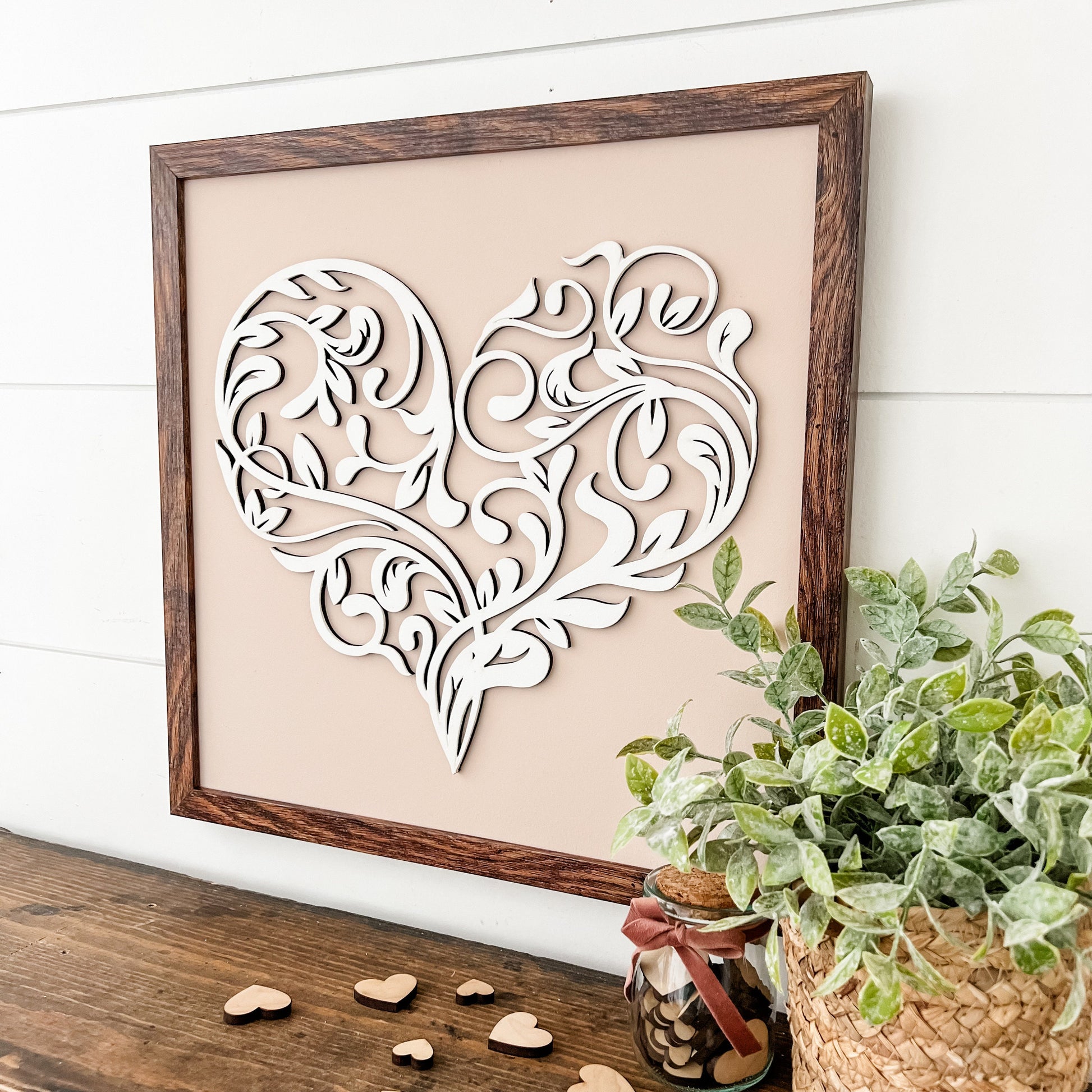 Handmade wood sign with laser cut heart. Great for layering with other pieces. Would make a great accent to any nursery decor as well! Entire heart is laser cut, giving each sign an added unique dimension.