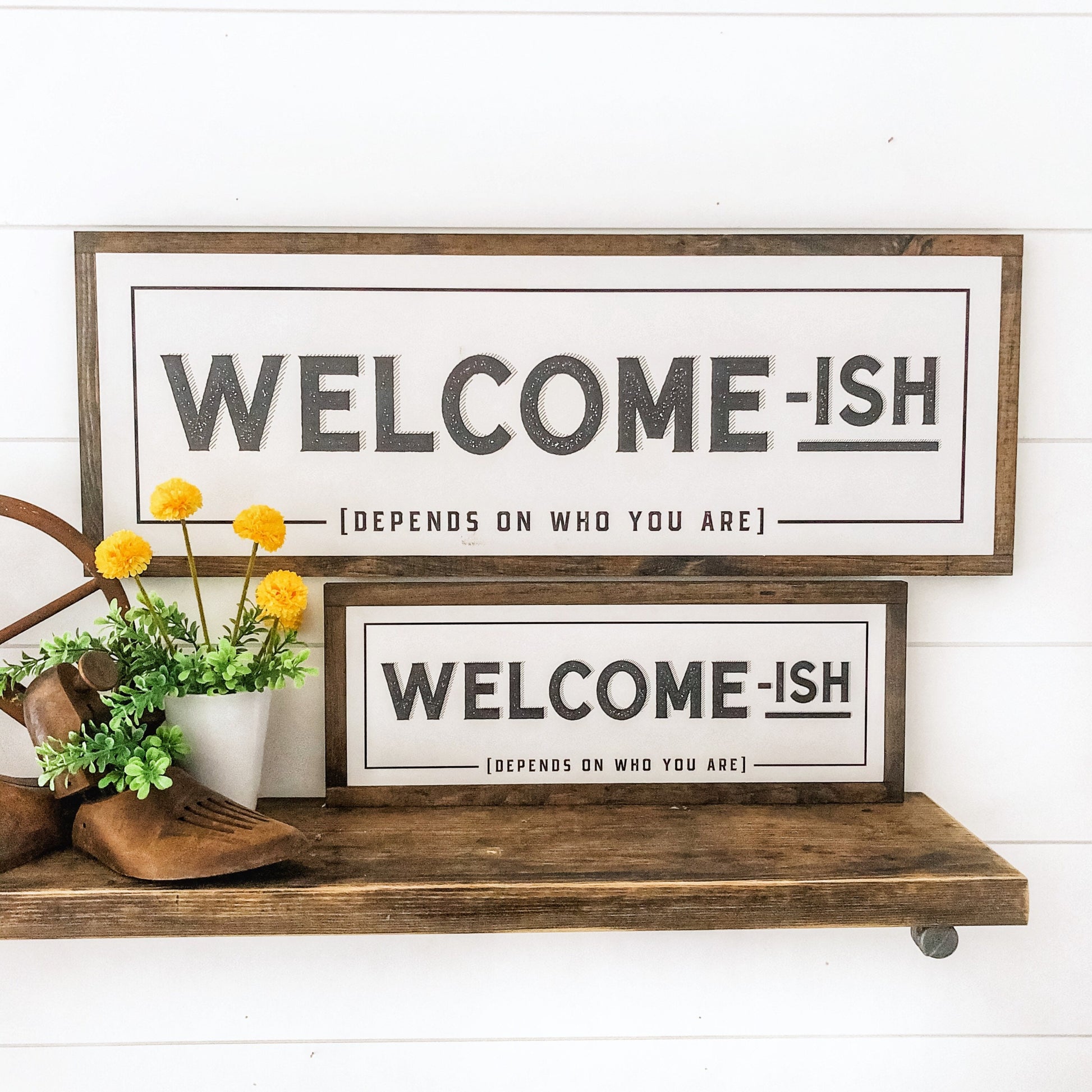 Funny farmhouse wood sign perfect for a fun gift for a friend. Welcome-ish sign for the front entryway or kitching/dining area.