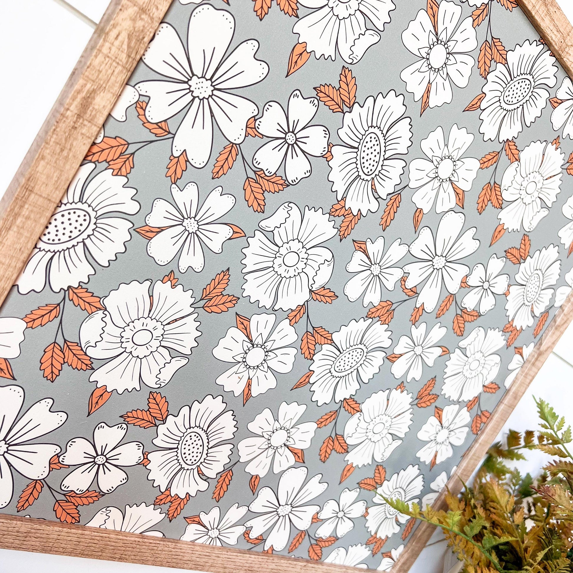 Handmade wooden sign printed whimsical floral pattern. Perfect for layering on a shelf or mantel! This listing is for the patterned floral sign only, just showing paired with other signs to show how you can style it.