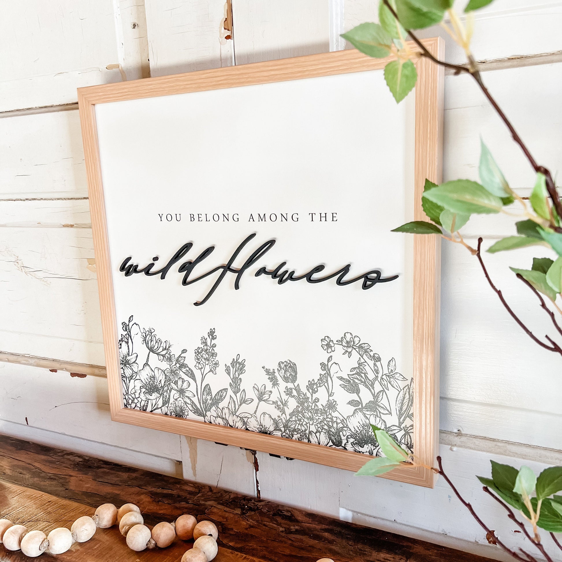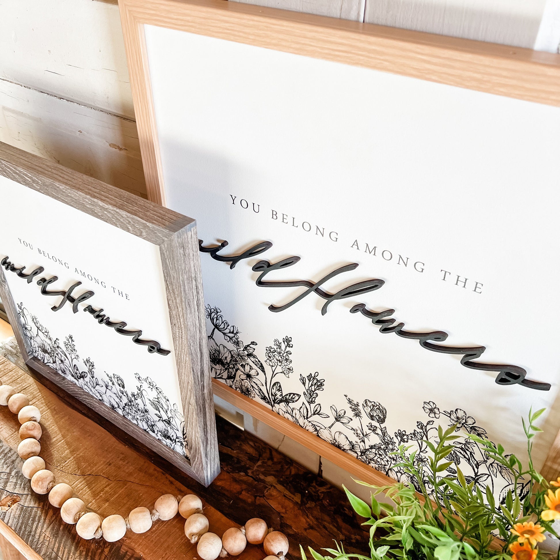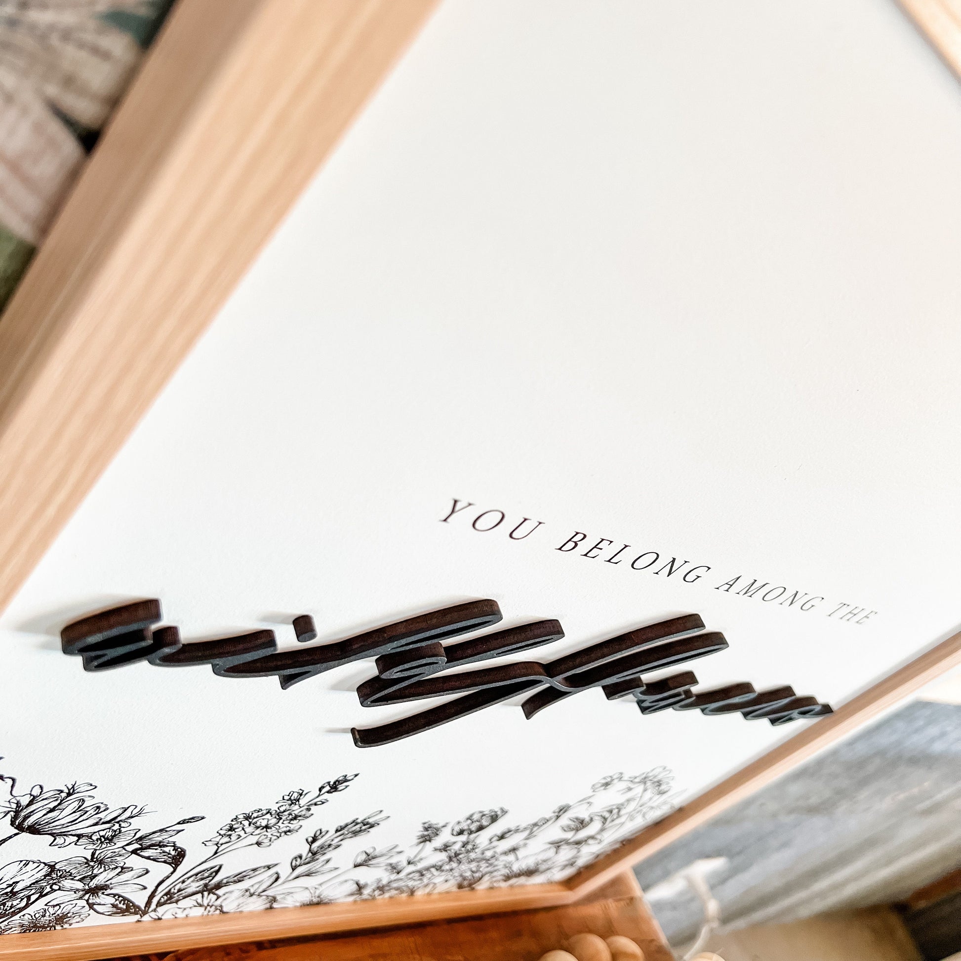 Handmade wooden sign with 'You belong among the wildflowers', with laser cut letting giving each sign an added unique dimension.