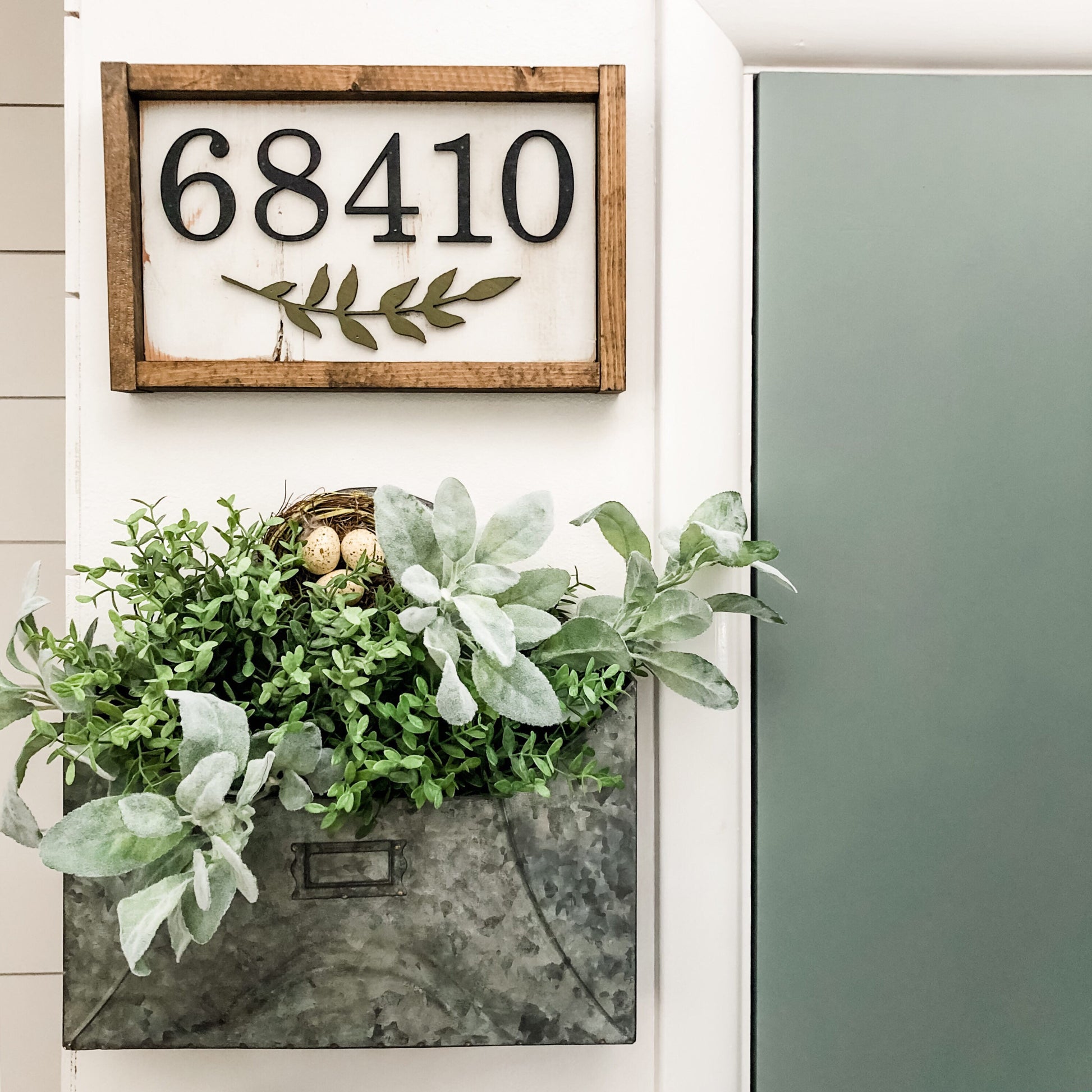 Unique handmade wooden zip code sign with painted white background and darker frame. All elements are laser cut giving each sign an added, unique dimension.